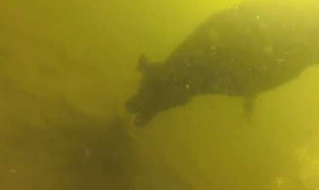 - “Murphy is an eight-year-old black Labrador and was on vacation with his owner at Cradle Lake in Saskatchewan, Canada. The owner decided to throw a golf ball off the pier on the lake and into four-foot-deep water. Murphy hops into the water (probably a little chilly) and swims around briefly before diving underwater to retrieve the ball.”
